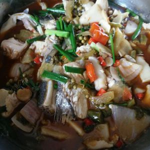 再把鸡精放进去,(因为我泡椒泡菜和泡姜放的多就没有放盐,觉得味淡的宝宝可以根据自己的口味放)这时候一定要轻轻翻动,不然鱼肉会散开