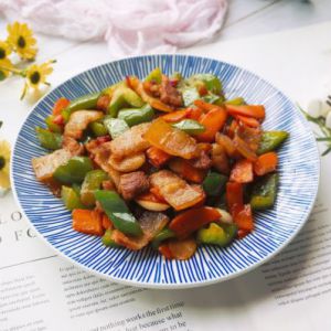 炒至青椒胡萝卜片变软,加少许盐,翻均匀后就可以关火了