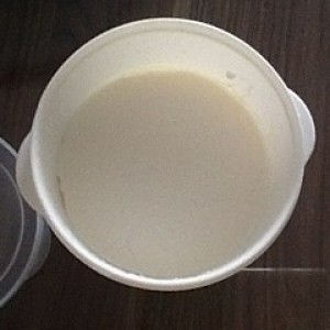 把牛奶和酸奶倒进小碗里