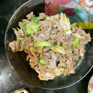 葱切段,羊腿肉切片,羊肉放淀粉、白酒(或者料酒)抓匀