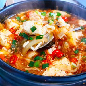 最后加入内脂豆腐、2小勺水淀粉勾个薄芡煮1分钟后关火出锅!