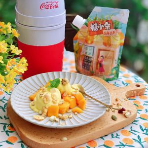 芒果肉压成泥,不用压太烂,留一点点颗粒感;