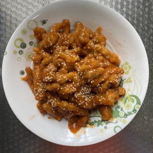 下炸好的里脊肉翻炒,均匀裹上番茄汁后、关火成出、撒上少许熟白芝麻、糖醋里脊完成!