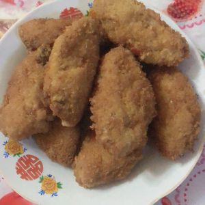 粘,淀粉,鸡蛋液,面包糠,装盘备用,锅中放油,油温六成热放入鸡翅,转小火炸5分钟,捞出,转大火下鸡翅炸一分钟,捞出装盘