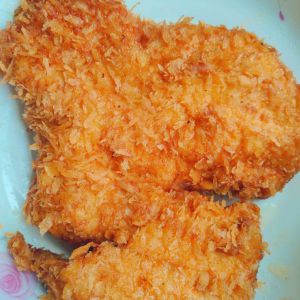 鸡排两面沾好鸡蛋液 包裹均匀面包糠