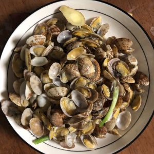 花蛤都开后,下葱段翻炒,大火收汁就可起锅了。