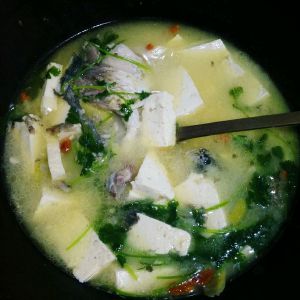 记得放入开水,这样做的鱼汤汤白肉鲜美。 大火煮开小火慢炖,煮五分钟放入豆腐,放入盐调味,再煮十分种左右放入枸杞,香菜。自己偿下咸淡就可以出锅了。有的人喜欢放糖和味精鸡精,但是我没放,我怕汤的汁变味。所以只放了点胡椒粉。喜欢收藏吧。