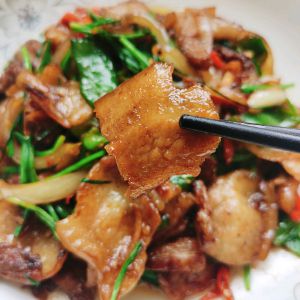 准备好配菜,生姜丝,大蒜碎,洋葱丝,韭菜段,青椒,小米椒