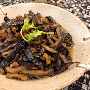 另起锅烧油,放入蒜片、一勺豆瓣酱炒香,倒入肉末炒熟,加入茄条,加一勺味极鲜、一小勺盐、味精、一点点白糖提鲜、一点点香油就可以了。