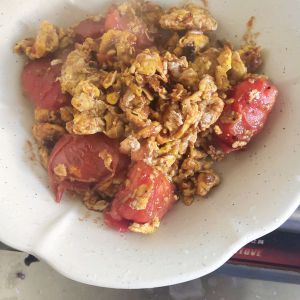 之后把鸡蛋倒入锅中翻炒,放点盐 根据自己口味 (放或不放番茄酱 )拿点葱花点缀就可以了