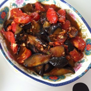 西红柿切块炒至出汁,倒入茄子、蒜末即可,出锅前加入适量盐即可。