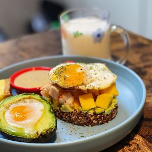 牛油果加入蛋黄酱和黑胡椒搅拌