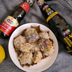 糯米圆子表面晶莹剔透,里面包含肉香,还带着荷叶的清香……