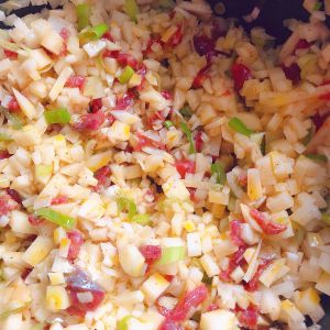 所以食材放一起搅拌均匀,倒入一点食用油,尝一下味道合适就行