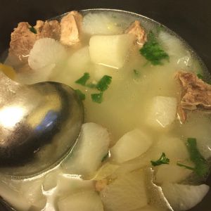 将排骨萝卜一起中大火熬煮,大概一个小时左右,期间不用放盐。