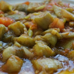 油锅热够加入多一点油炸茄子,炸至茄子变软即可,捞出备用。