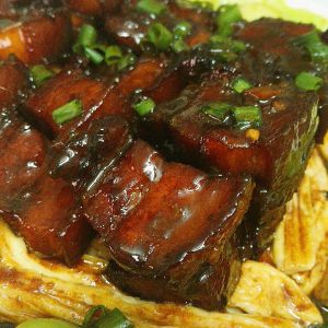 倒进开水,没过五花肉,放进葱结,生抽,老抽等配料,盖上锅盖,小火煮40分钟
