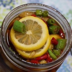 将鸡爪、柠檬和辣椒,加入白醋、味极鲜、白糖、矿泉水没过即可;PS 味极鲜:白醋=1:1.5