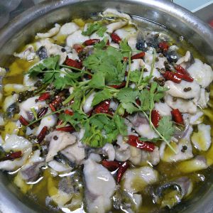 最后一步,另起锅,锅内烧油,等油烧好后关火,降一下油温。自己感觉油温差不多的时候,把青花椒放进去,等花椒的香味出来后,放干辣椒段,稍微爆一下就淋在鱼上面,再撒上香菜。完美!