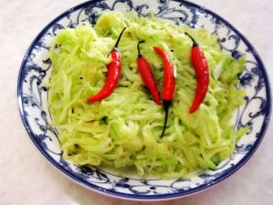 把青南瓜去皮后刨丝(也可连皮吃)。
