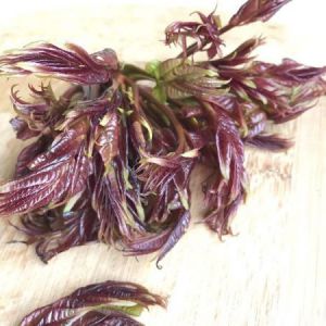 把红香椿把切掉,劈成一根根。去掉老叶。清洗干净。