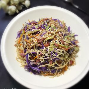 面条煮至8层熟捞出过下热水,放点麻油拌匀备用