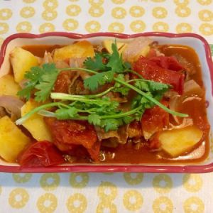 土豆切滚刀块,入番茄汤汁,小火炖烂