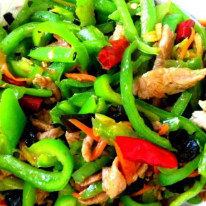 1把葱姜放入热油锅倒入酱油少许2放入肉丝炒好盛出3炒青椒胡萝卜八分熟放肉丝4加入盐十三香5翻炒6盛出。噢耶!!