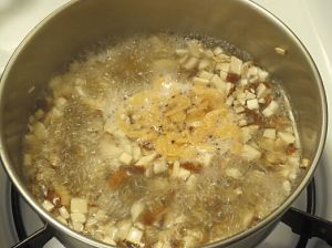 把香菇和虾皮焯水10分钟捞出,剩下的汤备用。