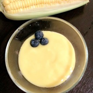 玉米粒加少许水用搅拌机打成糊糊状,水的多少决定玉米羹是否能成果冻状。