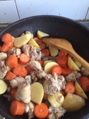 放入洗好切好的菜 我一直觉得咖喱里就应该只有土豆和胡萝卜 所以就放了这两种 煸炒几下