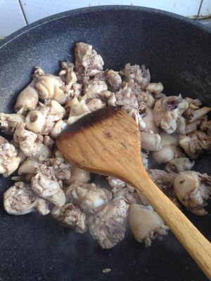 锅里放油 放入冒好的鸡块 炒几下