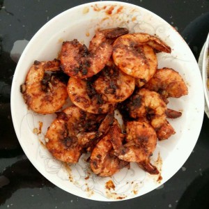 把虾洗净,挑了虾线。放入一个大碗中,加入少许盐,倒料酒去腥味,料酒不用太多,只要让每只虾都粘上汁即可。