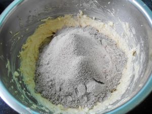 筛入低粉、可可粉和泡打粉拌匀至没有干粉;我是三种粉混合一起筛的~~