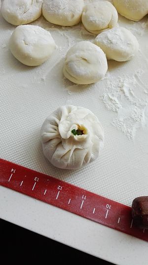 包入适量的馅料,做出包子;