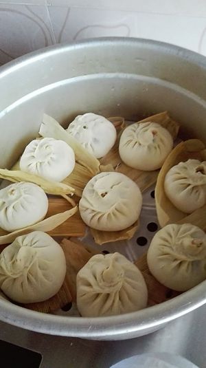 垫上玉米皮,包子放入蒸锅里,进行二次醒发,锅里有凉水,不开火;醒发15-20分钟;看室内的温度定醒发的时间;