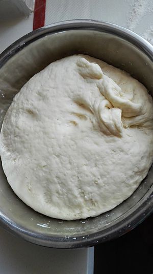 面粉、清水260克、酵母揉面面团,室温下发酵,图中是发酵好的面团;
