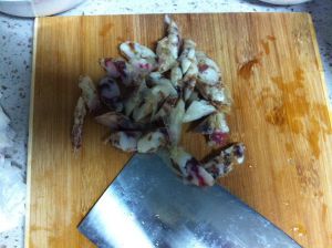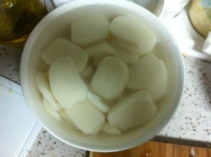 年糕切片,喜欢有嚼劲的可以切得稍厚,入锅煮到8分熟(基本上浮在水面上就可以了),放在凉水碗里备用,这样糯米更Q。