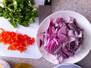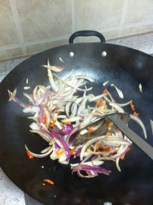 开炒啦~先把红椒和洋葱入锅大火炒出香味