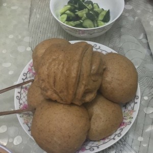 红枣馒头配西红柿牛腩炖土豆,还有蒜苗炒鸡蛋(没有照片,为什么没有照片呢,因为老公不等我照就开吃了)那我也开吃吧,
