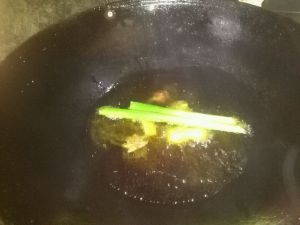 首先把菜籽油下锅,冷油时放入大料八角葱叶老姜(老姜拍破)香果草果桂皮(后三样没有的也可以不要,味道差不到很多)中火烧至油去生味,这时候已经很香了!!