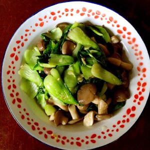 锅中放油,油热下葱末姜末爆香,放入油菜翻炒,之后加入香菇,倒入适量鲍鱼汁,加盐,味精调味,出锅。一盘好吃的香菇油菜就做好啦!