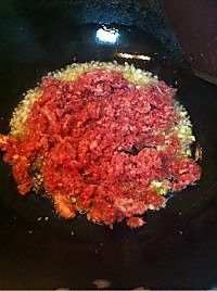 继续翻炒至全部变色,盛出炒熟的牛肉馅