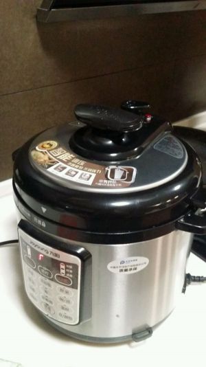 接着把浸泡了的红豆放进高压锅,水要比红豆高出一半左右,按粥键煮20分钟左右。