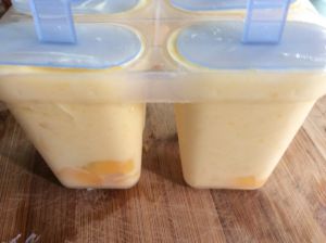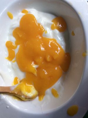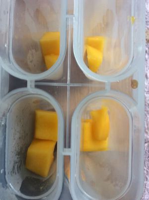 然后把混合好的酸奶和芒果泥倒入模子里,入冰箱冷藏4个小时即可。