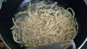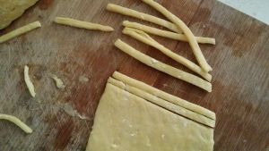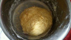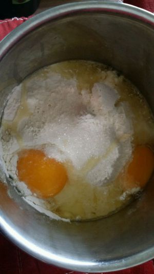 鸡蛋加面粉搅拌。无需加水,湿度刚好合适。