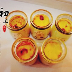把加入了鸡蛋的牛奶过筛(这样口感会更细滑)再慢慢倒入刚刚铺好焦糖底的瓶子里