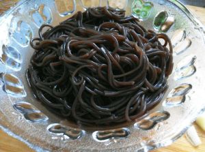 蕨根粉中加入适量盐,酱油,醋,香油拌匀,将炒熟的肉丝加上,撒一层小葱花,加入适量辣椒油即可