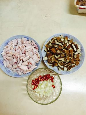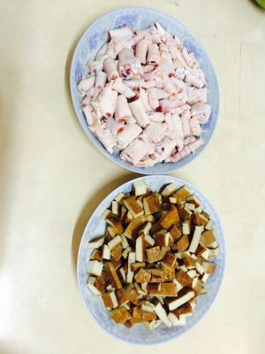 鸡爪洗净 切段(大小可按个人喜好切)香干洗净切丁 备用