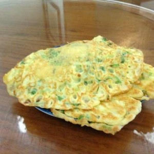 锅中热油,取出三分之一面糊入锅,煎至一面凝固,另一面也微微凝固,反过来再煎,直至两面金黄,略焦一点点,其实更香噢哈哈